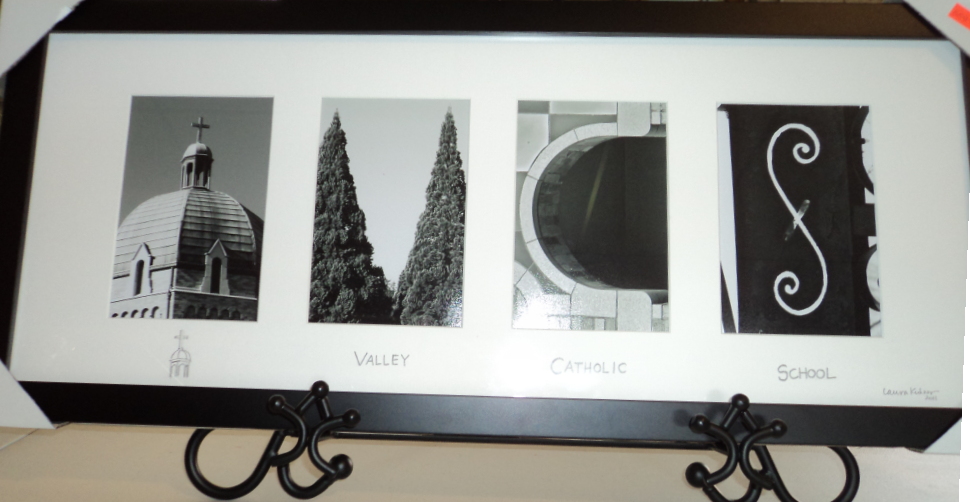 Display beautiful framed photography by Valley parent, Laura Kuhner, capturing Valley Catholic School Letters, on a metal easel.